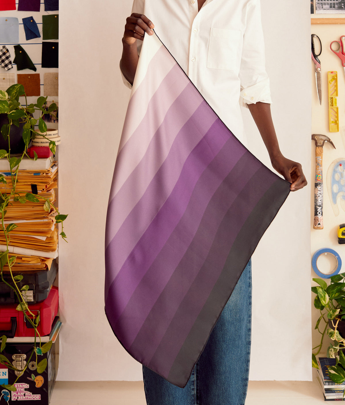 All of our scarves are made using technology that digitally prints ink on both sides of the silk, meaning no side of the fabric is less saturated in vibrant color than the other. It's a wild technological feat that no other printing process has been able to achieve in silk's millennia-long legacy of use.