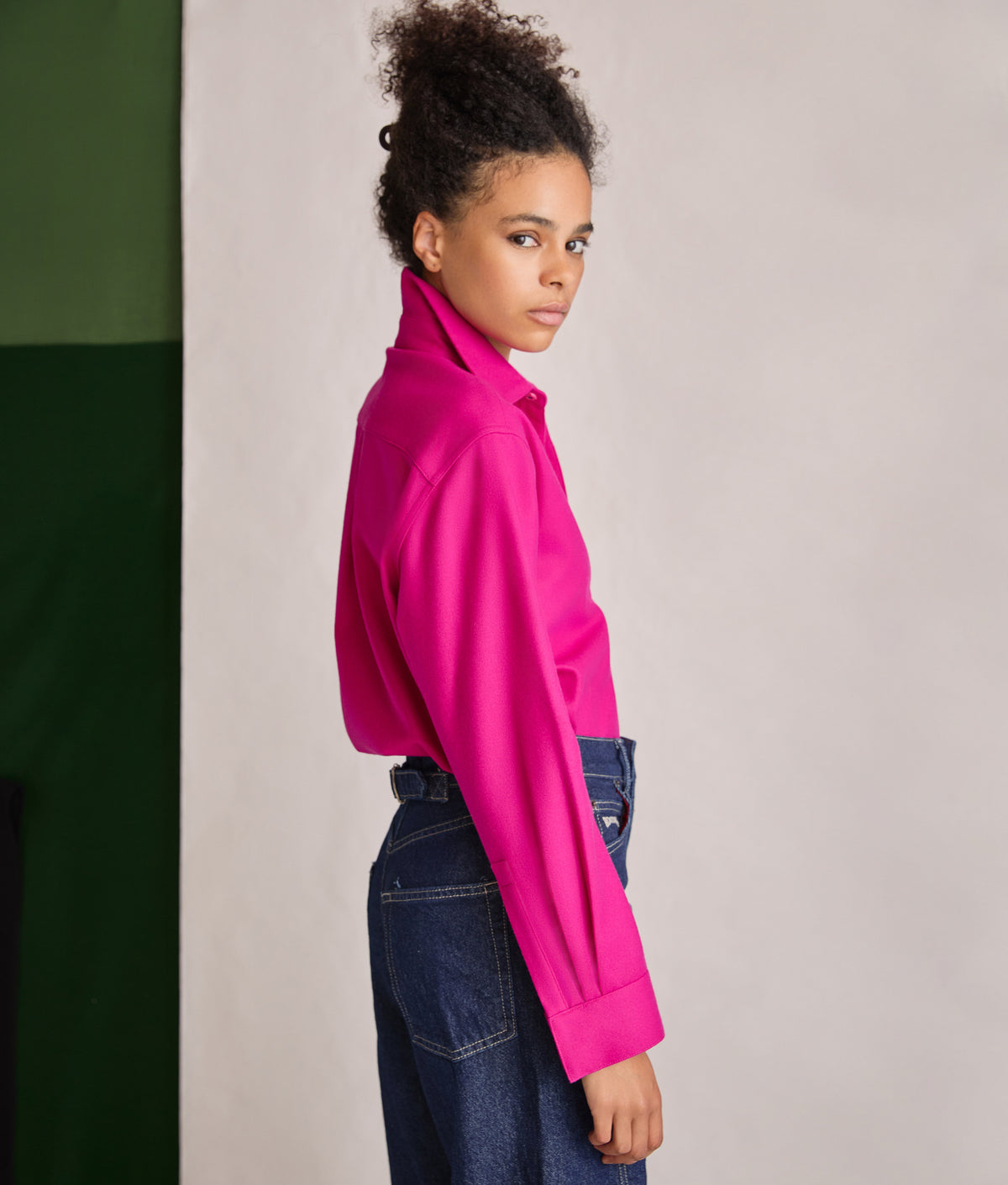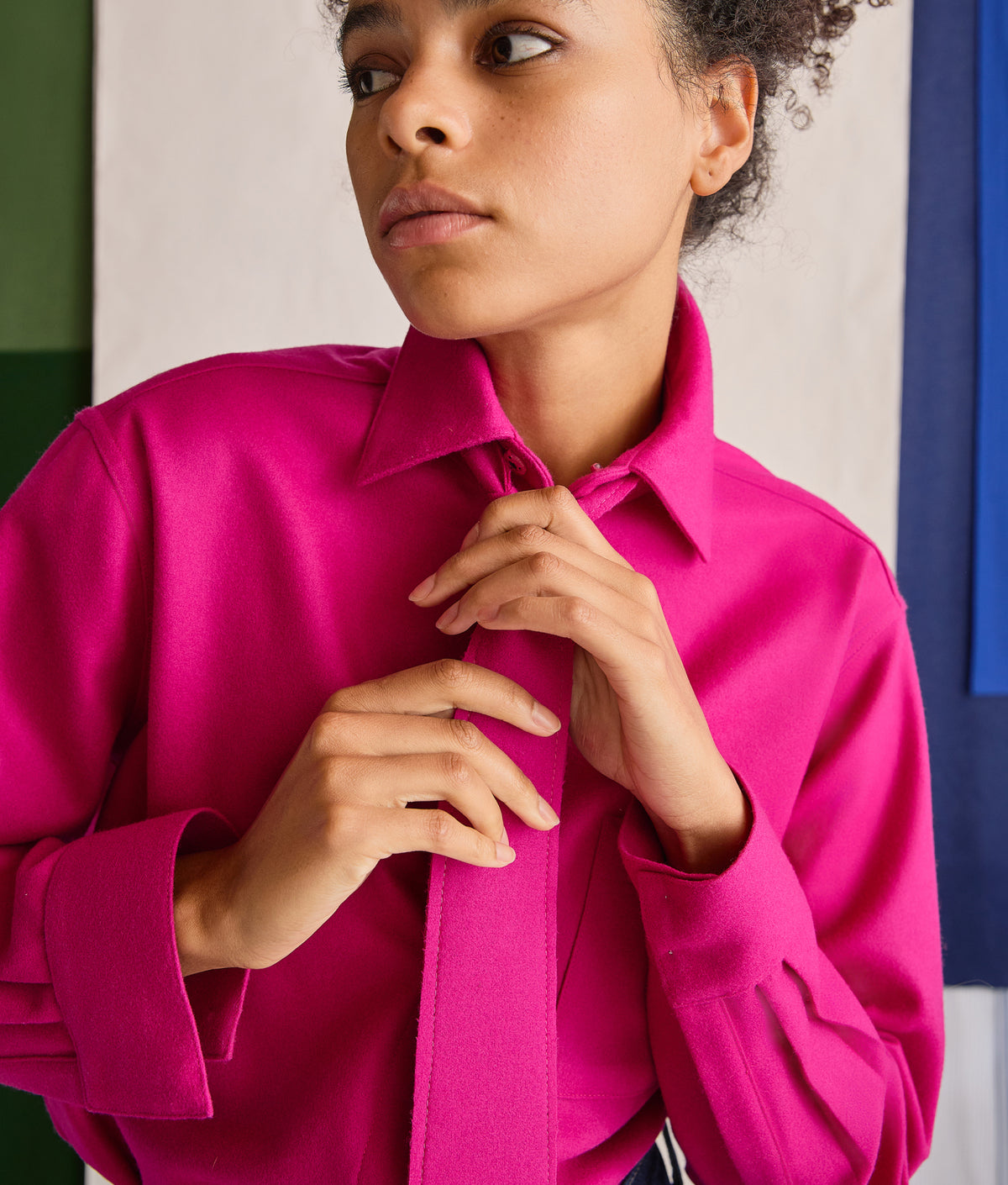 Made in 100% merino wool, with enamel-painted metal snaps sourced from our good friends in New York's Garment District. The covered front placket obscures the snaps when fully closed. Strong and durable, yet breathable and wildly elegant, it's a workhorse that looks like a showhorse.