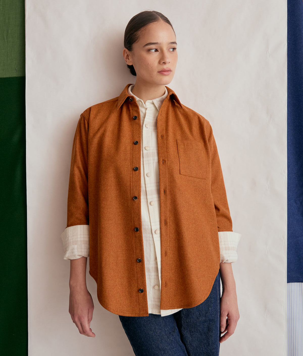 A true workshirt: tough and durable, but damn it's soft and elegant. 100% merino wool with upcycled buffalo horn buttons.