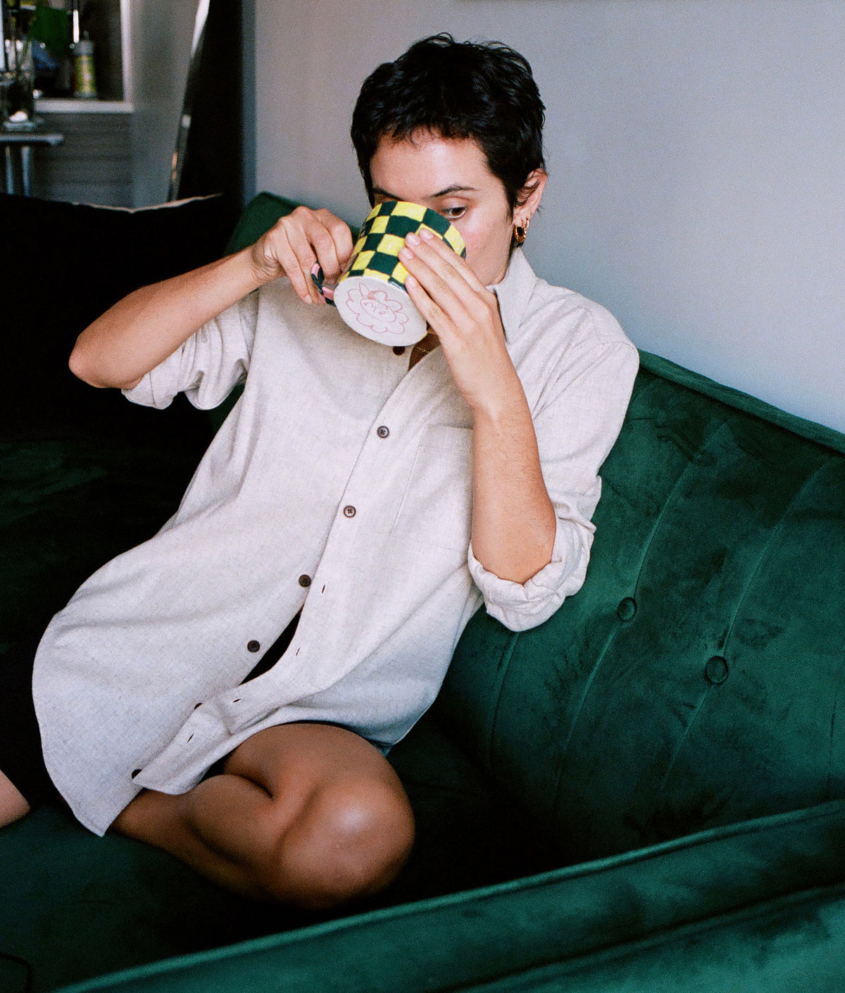- Buttons: Carved from the corozo nut, aka the tagua nut, then custom burnt, sourced from our good friends in New York's Garment District