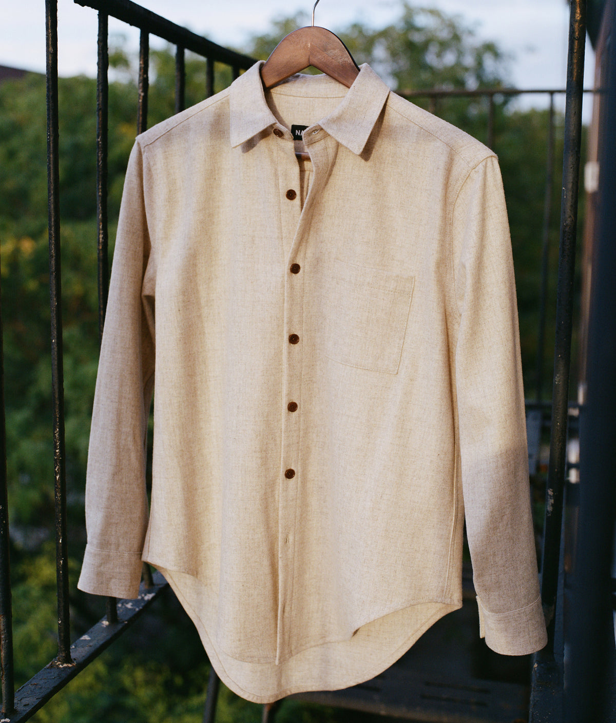 A true workshirt: tough and durable, but damn it's soft and elegant. 100% merino wool with burnt corozo buttons.