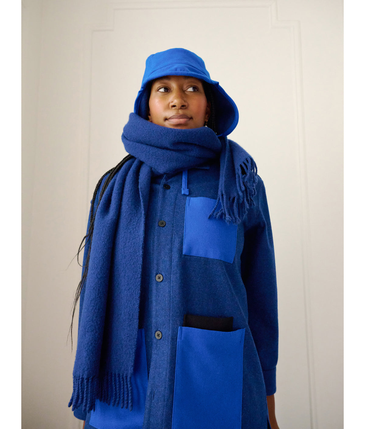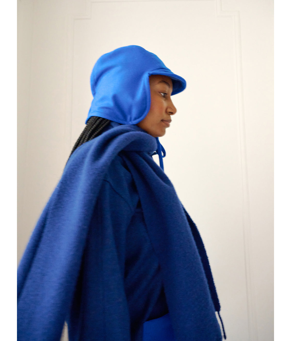 Wool exterior & lining for unbeatable warmth Can be tied multiple ways Elasticated shirring for snug fit Single stitch seaming Wired brim for adjustable shaping & styling