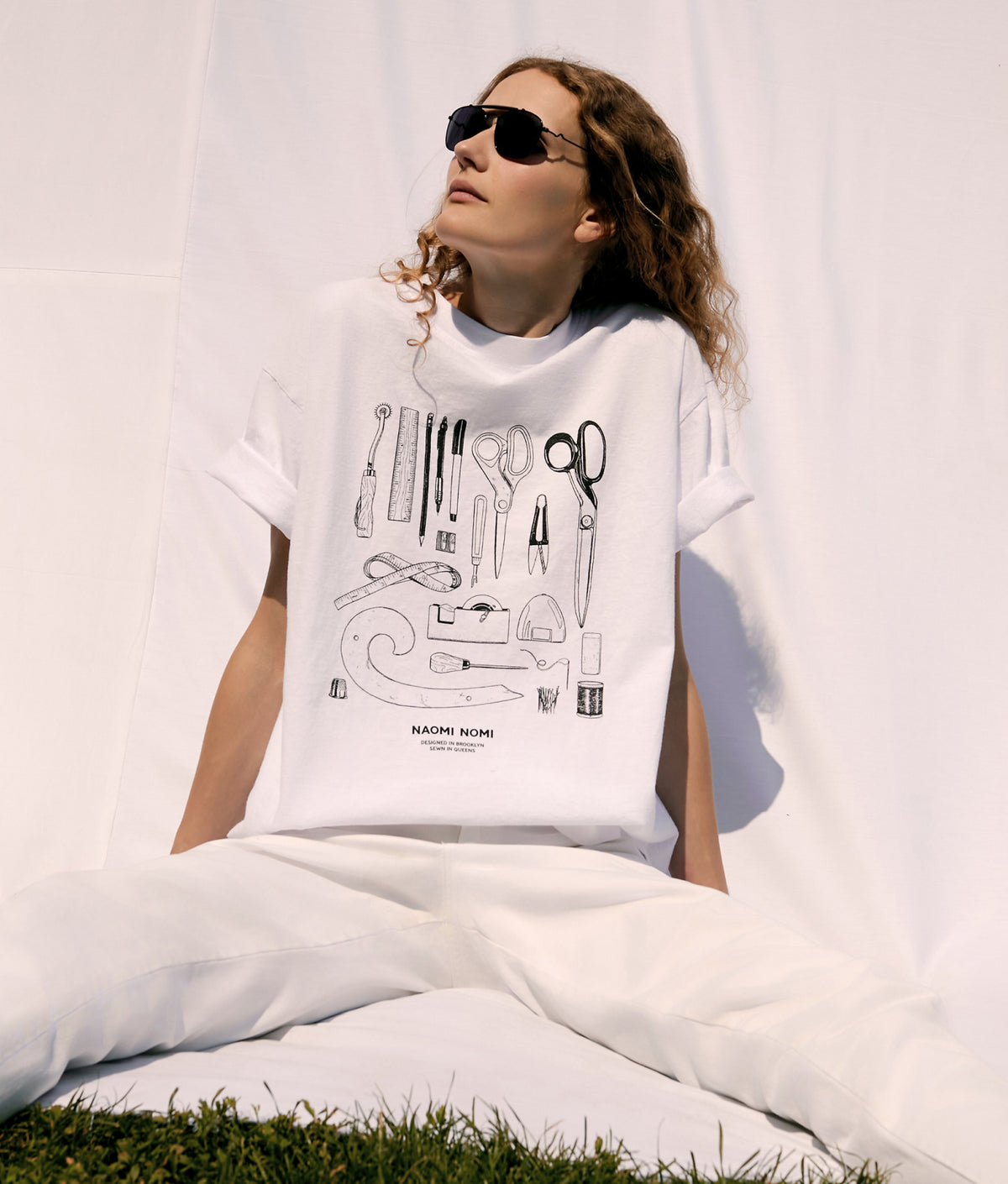The everyday everything tee, adorned with the tools of our trade. Made with 100% Upcycled Cotton.